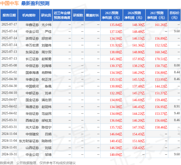 最新盈利预测明细如下: